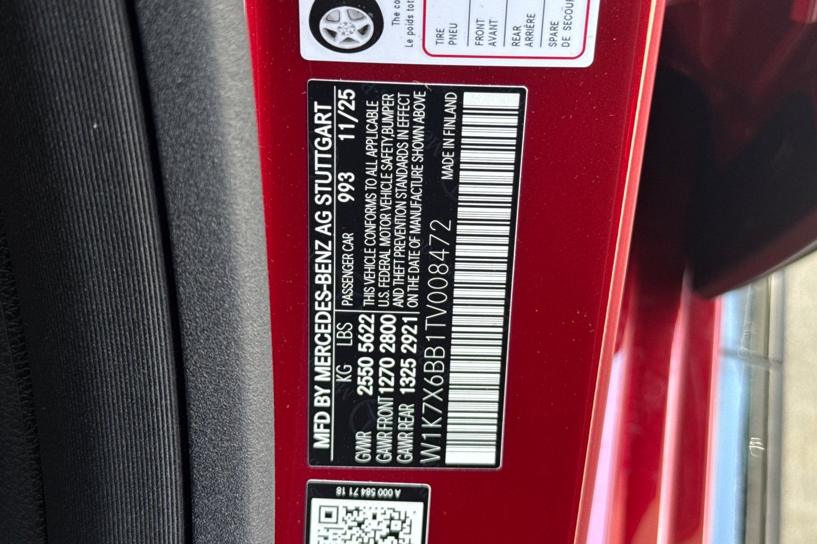- VIN : W1K7X6BB1TV008472