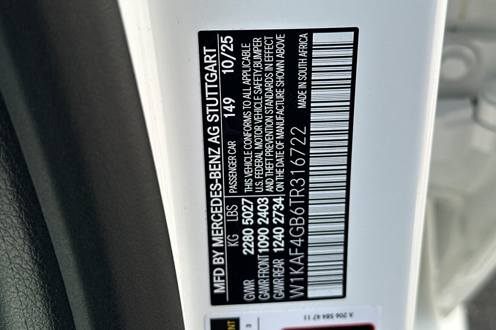 - VIN : W1KAF4GB6TR316722