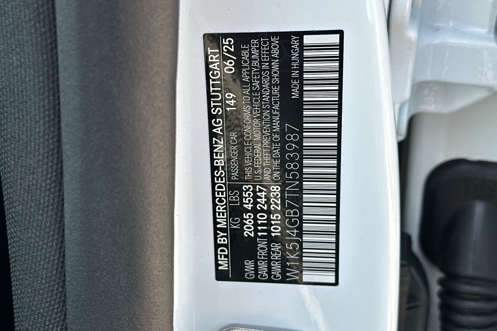 - VIN : W1K5J4GB7TN583987