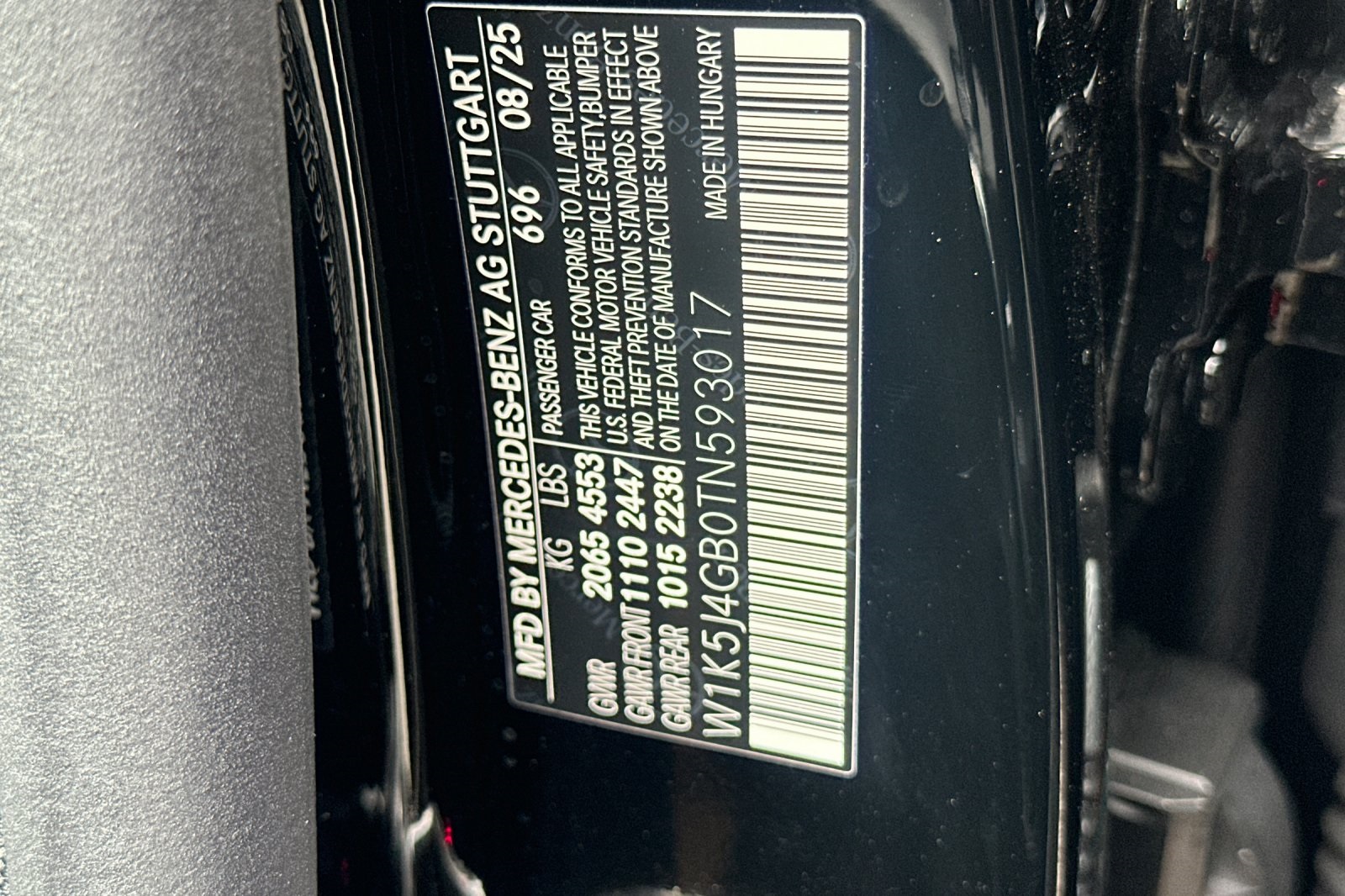 - VIN : W1K5J4GB0TN593017