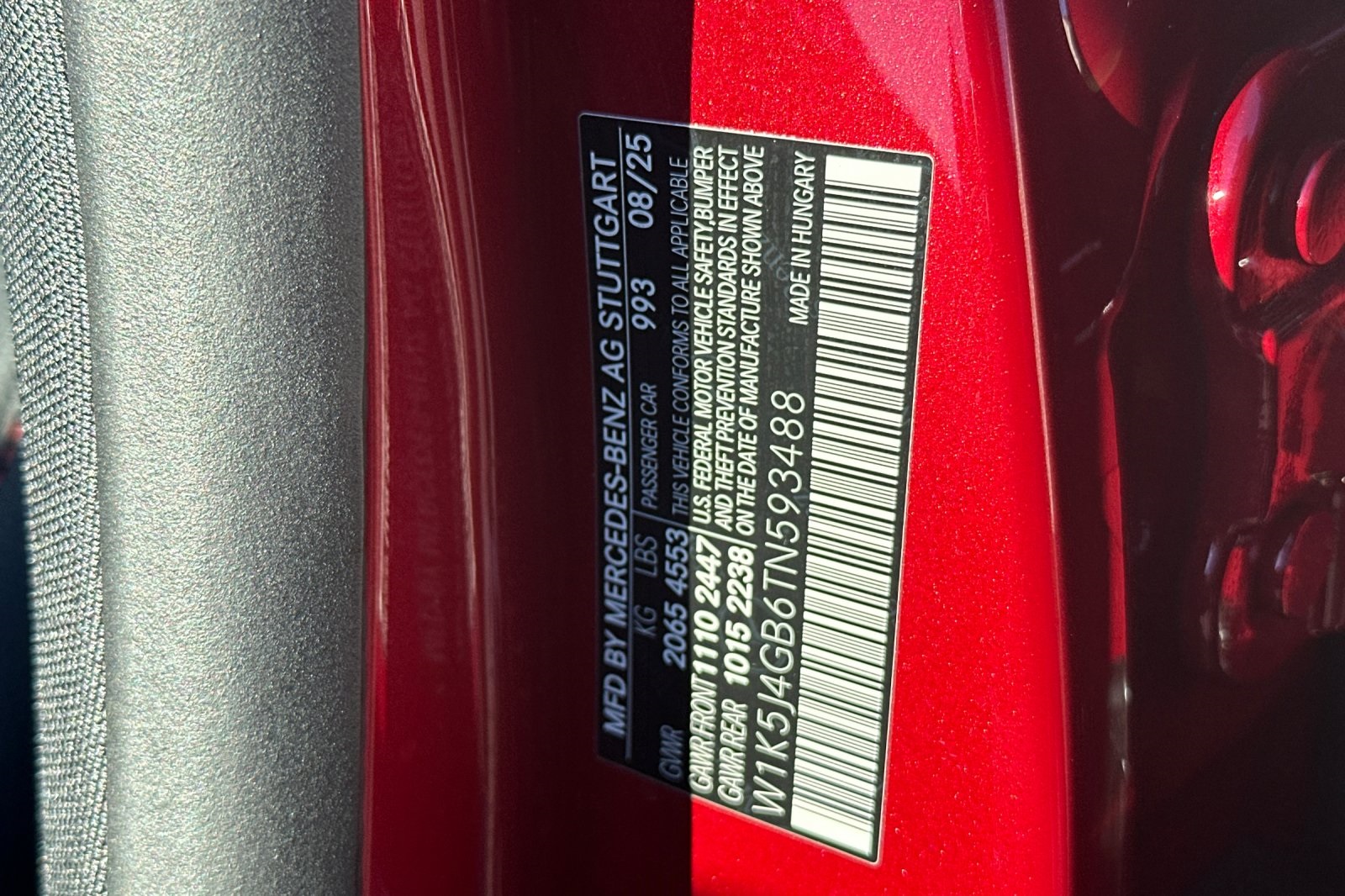 - VIN : W1K5J4GB6TN593488