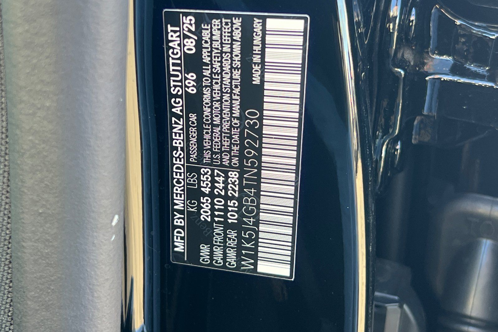 - VIN : W1K5J4GB4TN592730