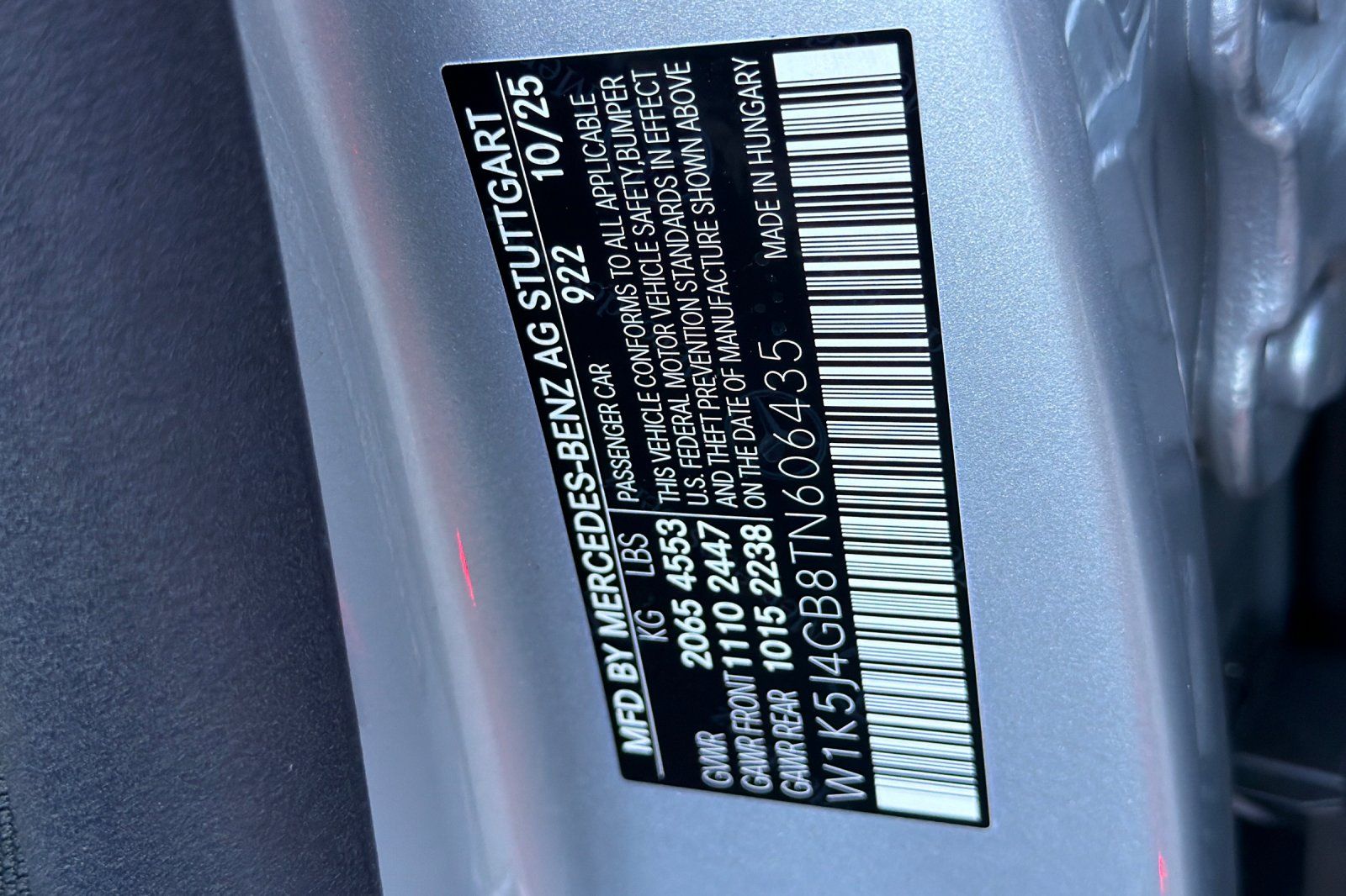 - VIN : W1K5J4GB8TN606435