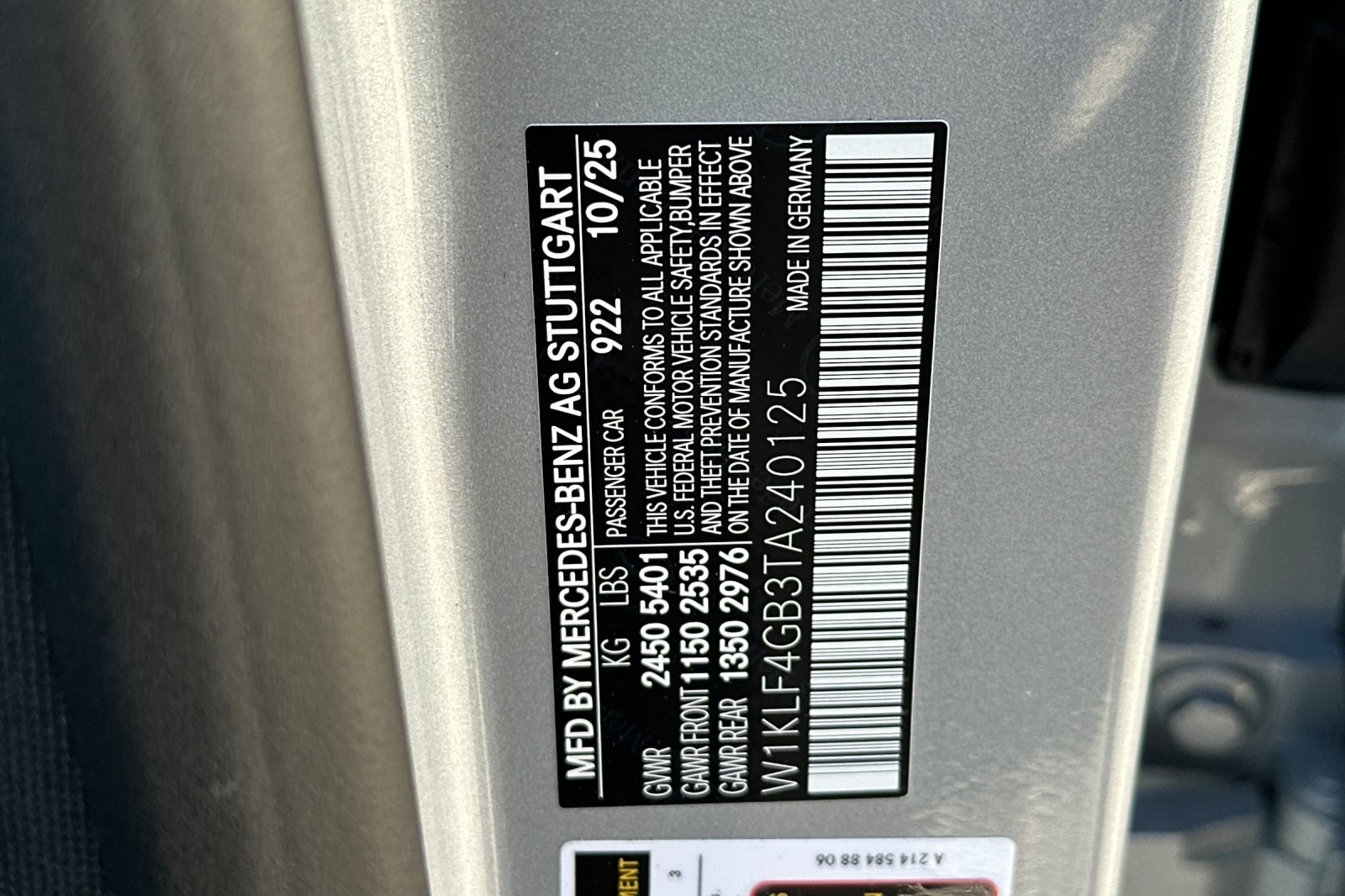 - VIN : W1KLF4GB3TA240125