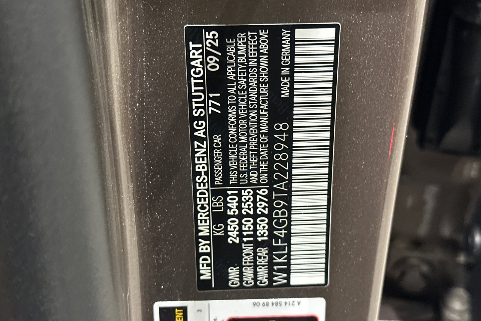 - VIN : W1KLF4GB9TA228948