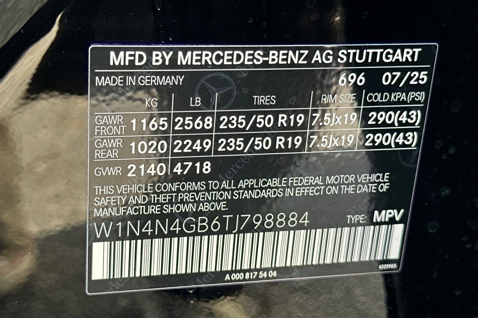 - VIN : W1N4N4GB6TJ798884