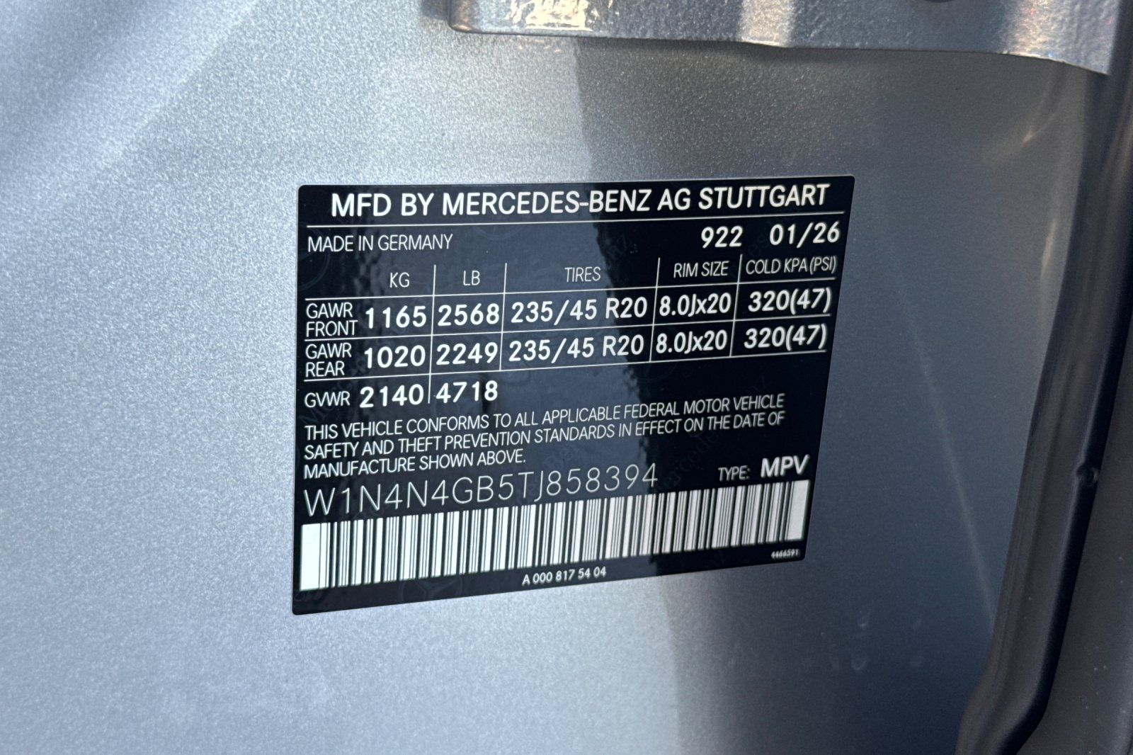- VIN : W1N4N4GB5TJ858394