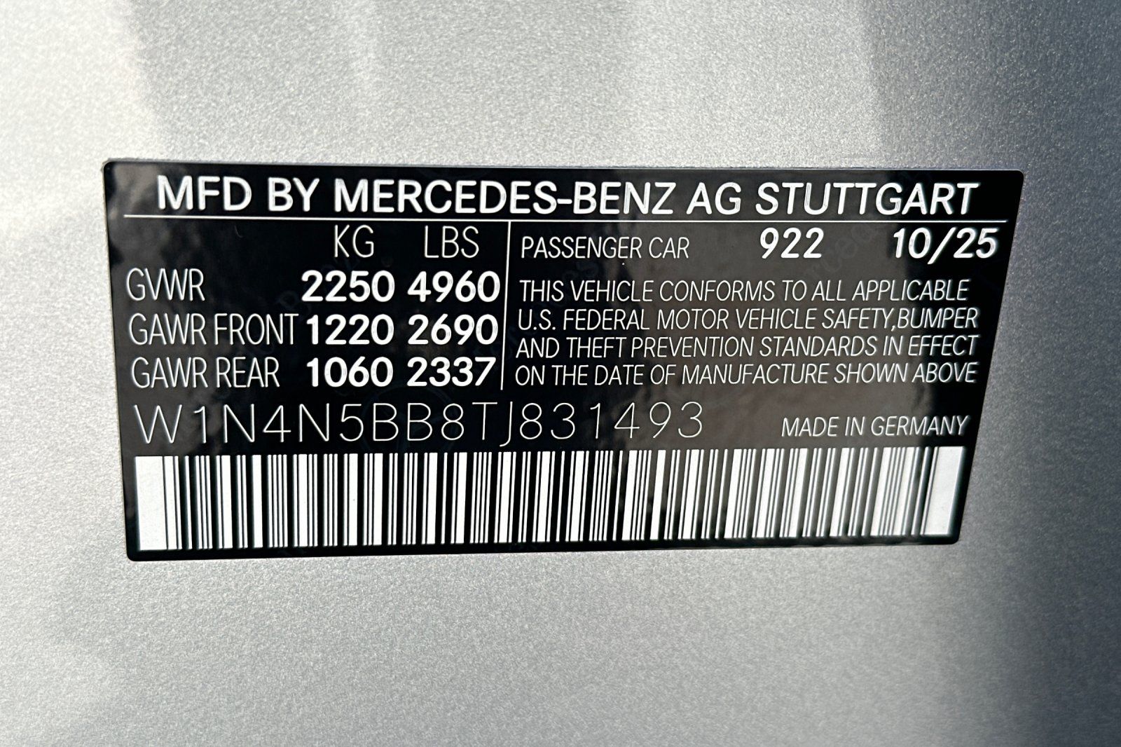 - VIN : W1N4N5BB8TJ831493