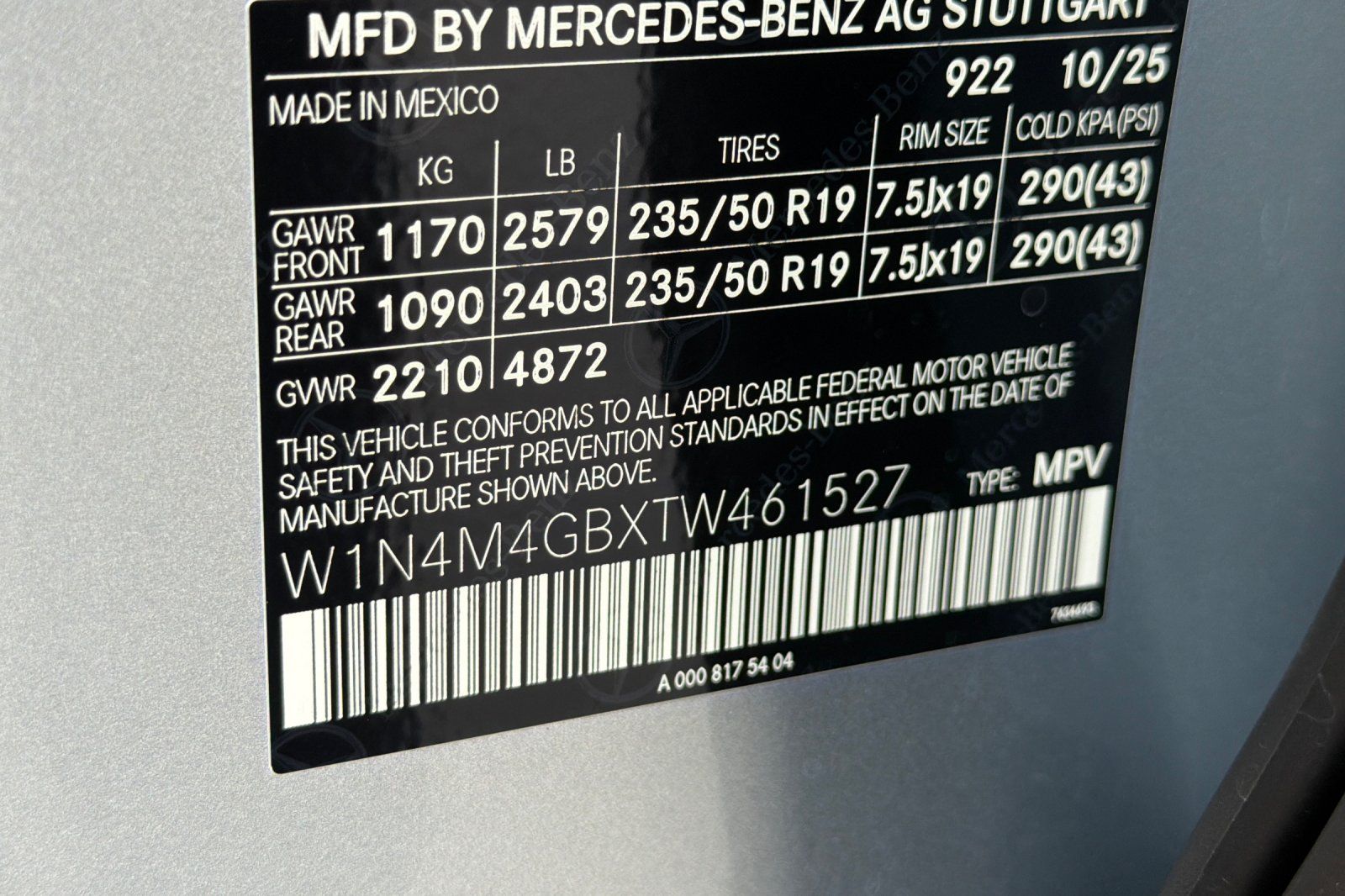 - VIN : W1N4M4GBXTW461527