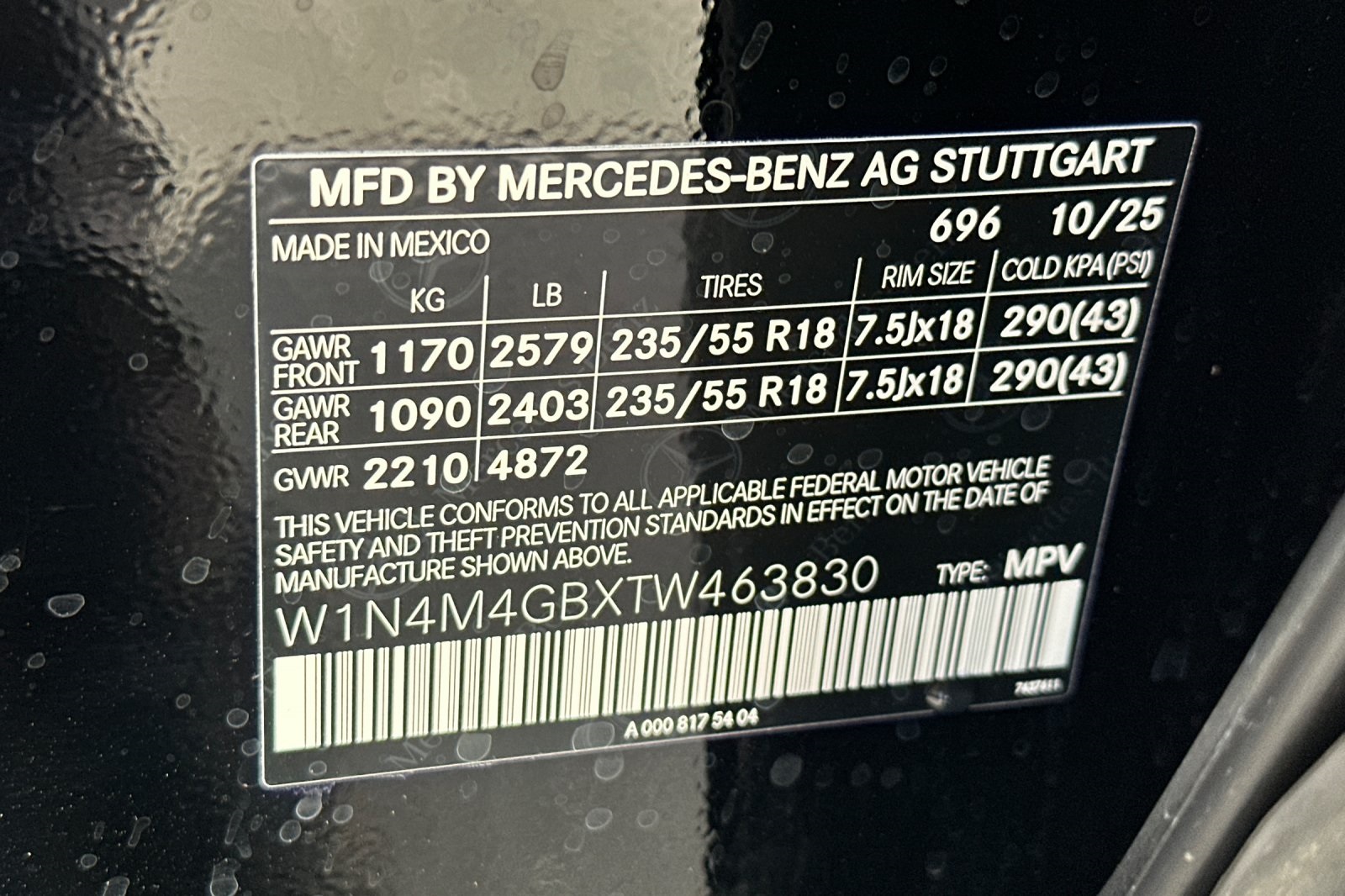 - VIN : W1N4M4GBXTW463830