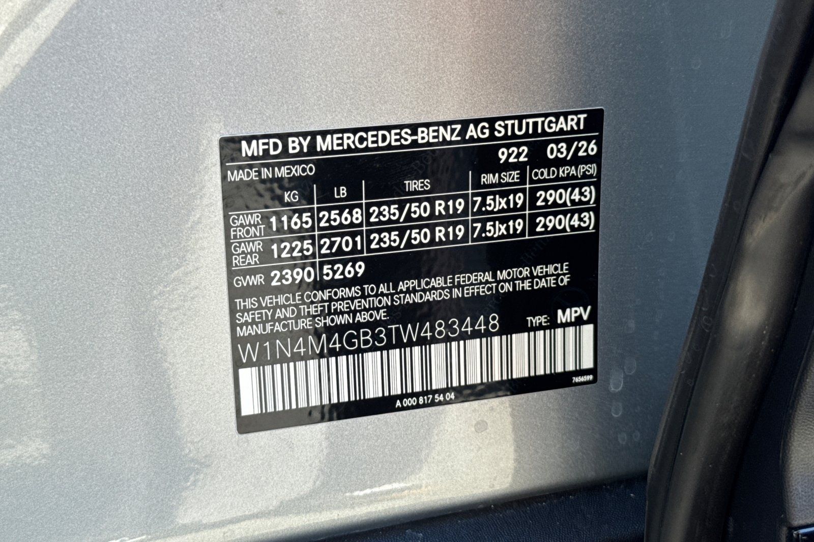- VIN : W1N4M4GB3TW483448