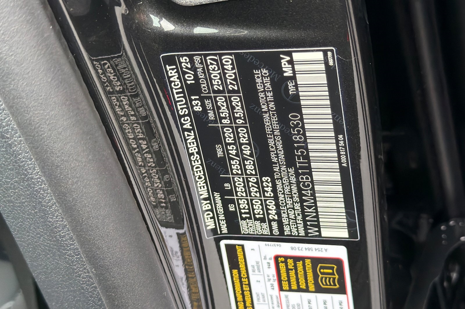 - VIN : W1NKM4GB1TF518530