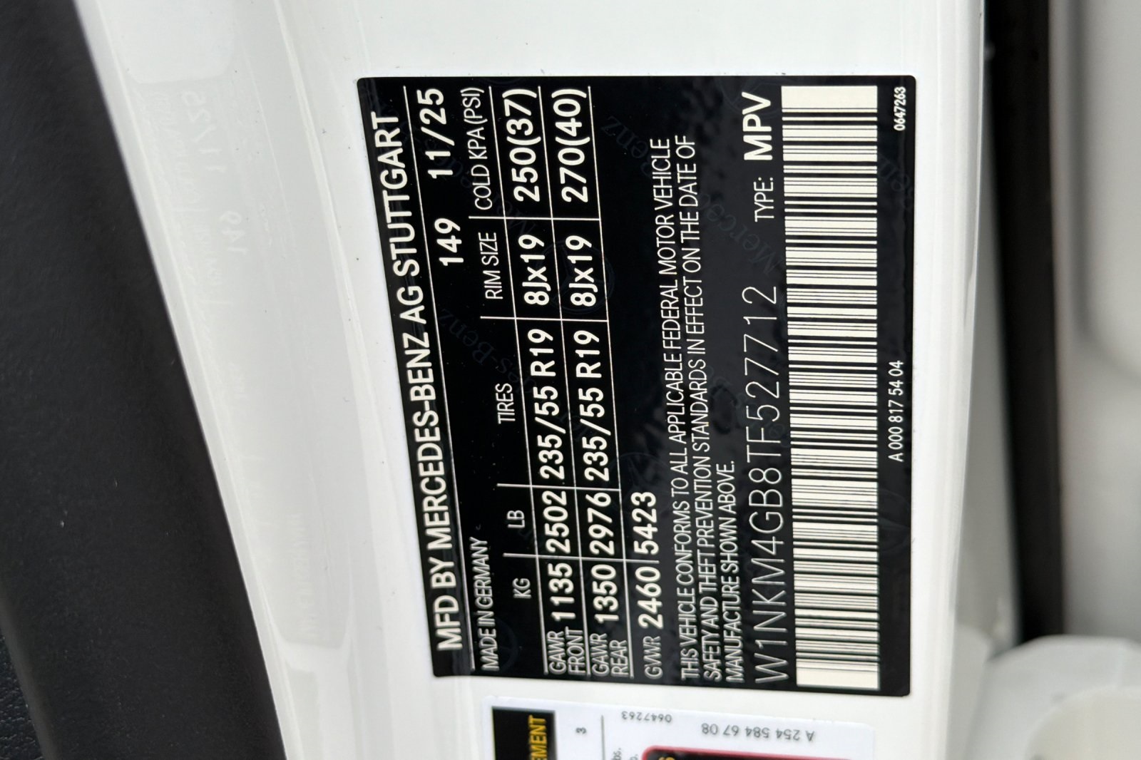 - VIN : W1NKM4GB8TF527712