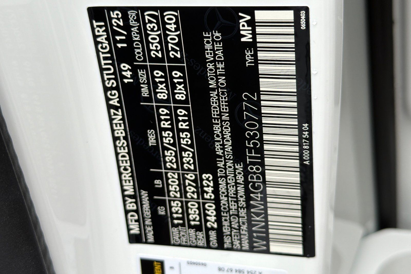- VIN : W1NKM4GB8TF530772