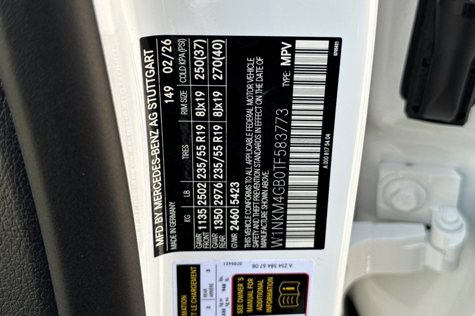 - VIN : W1NKM4GB0TF583773