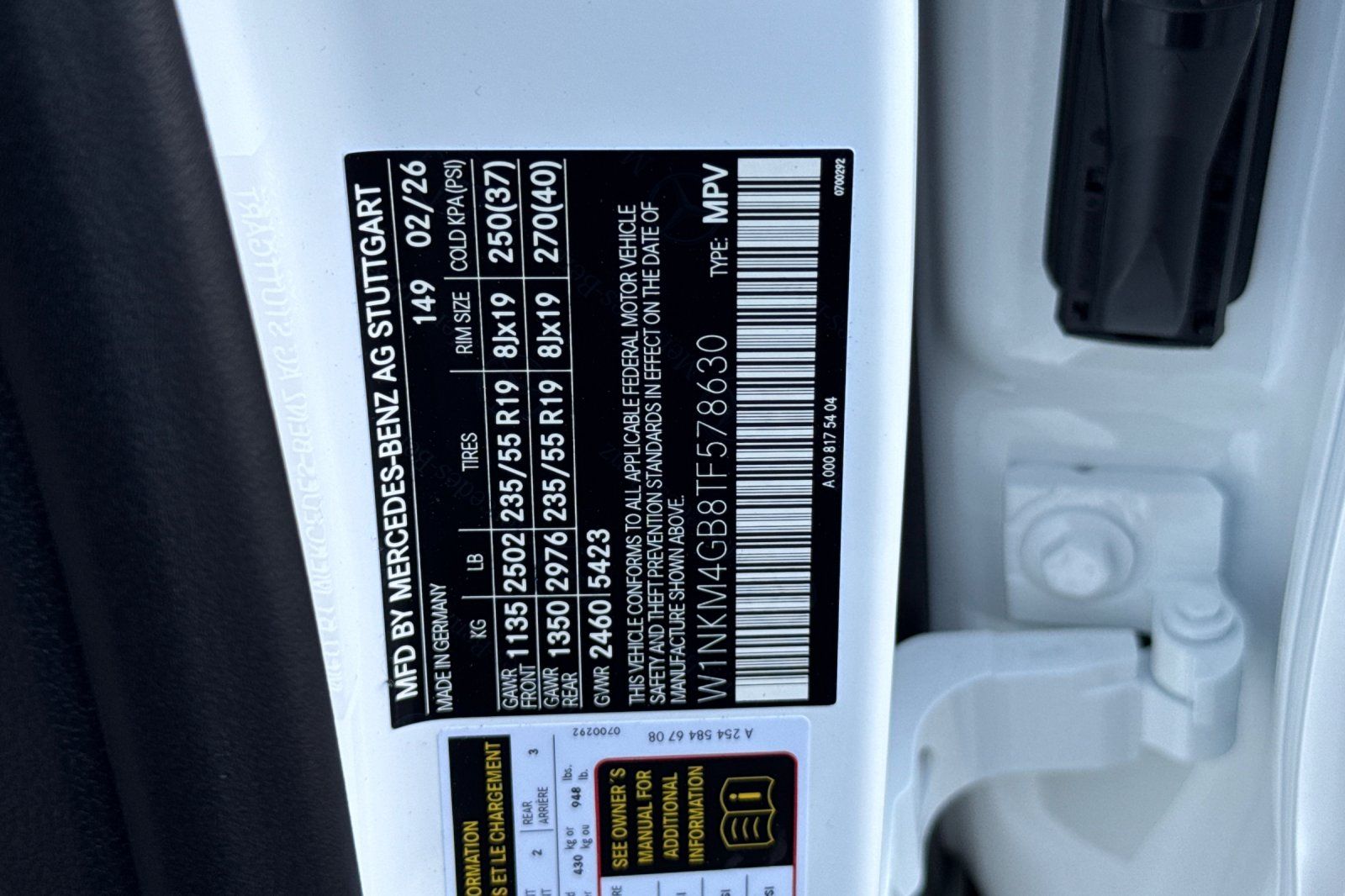 - VIN : W1NKM4GB8TF578630