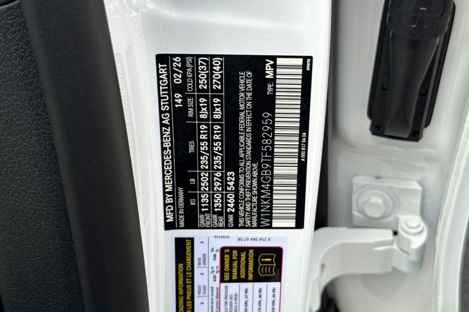 - VIN : W1NKM4GB9TF582959