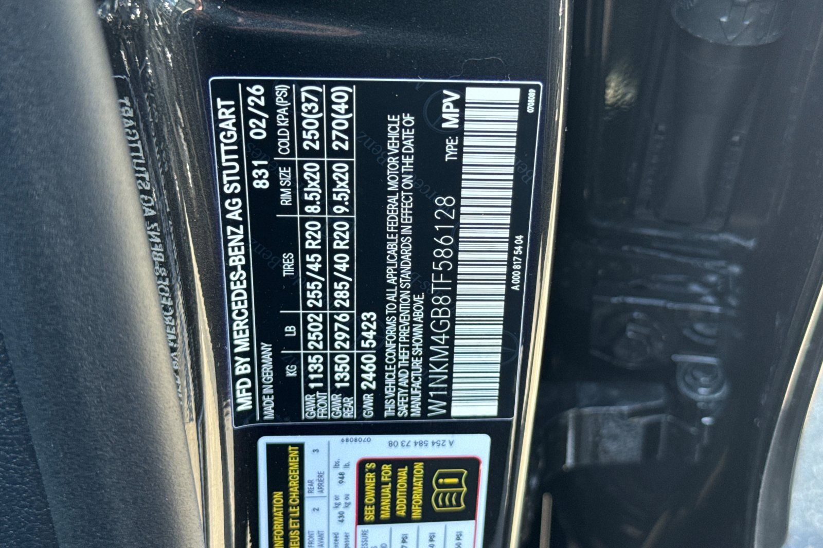 - VIN : W1NKM4GB8TF586128