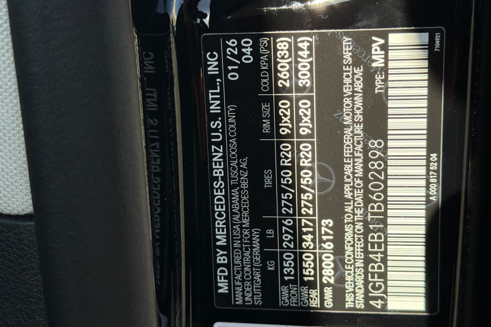 - VIN : 4JGFB4EB1TB602898
