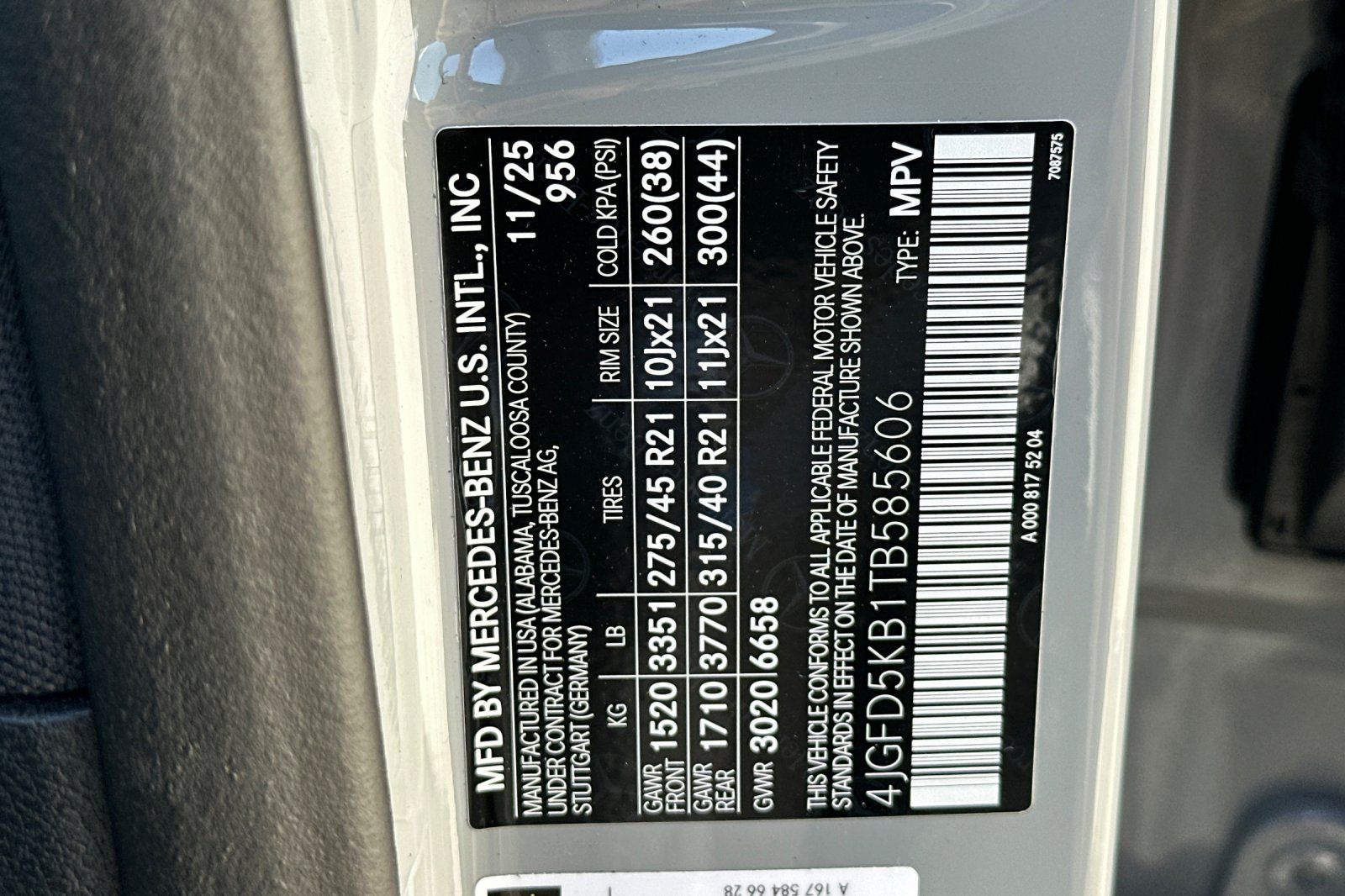 - VIN : 4JGFD5KB1TB585606