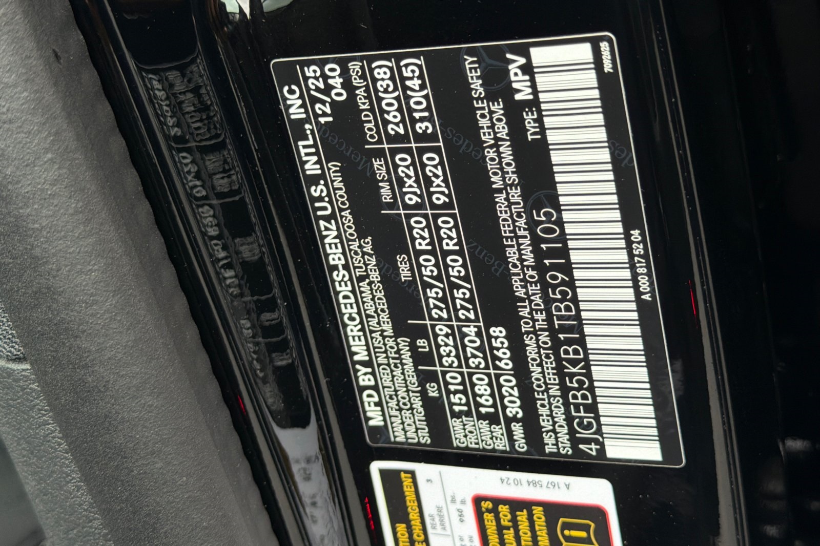 - VIN : 4JGFB5KB1TB591105
