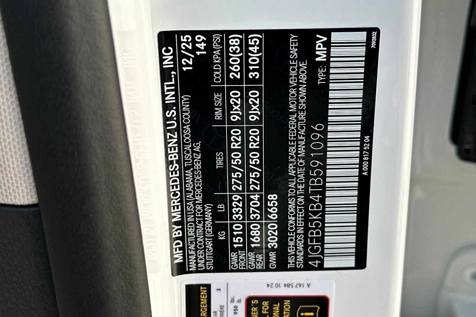 - VIN : 4JGFB5KB4TB591096