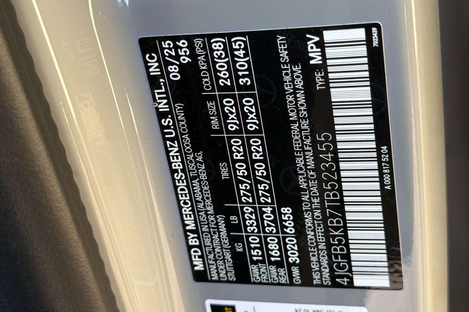 - VIN : 4JGFB5KB7TB523455