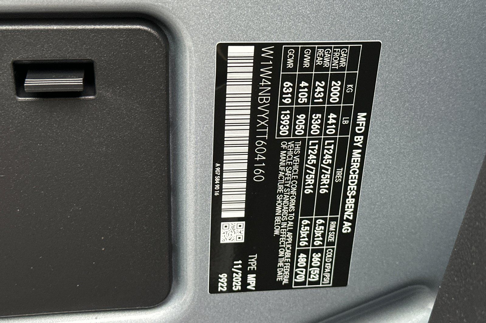 - VIN : W1W4NBVYXTT604160
