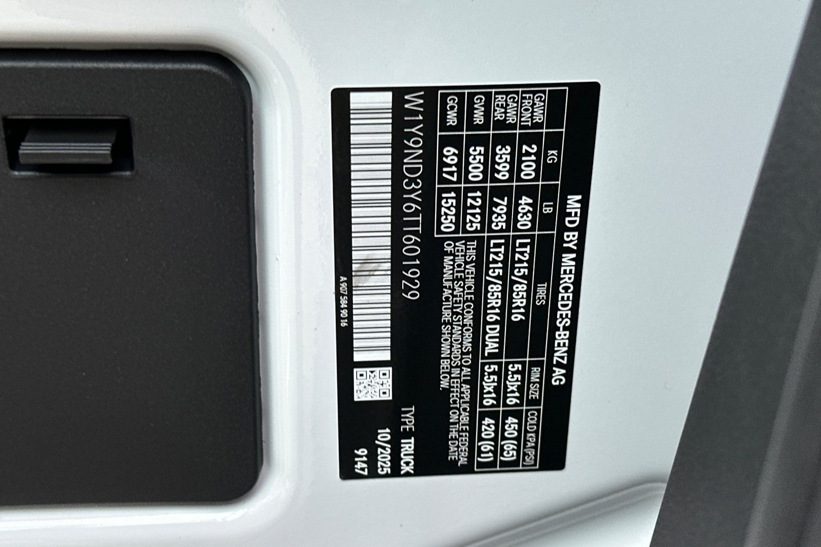 - VIN : W1Y9ND3Y6TT601929