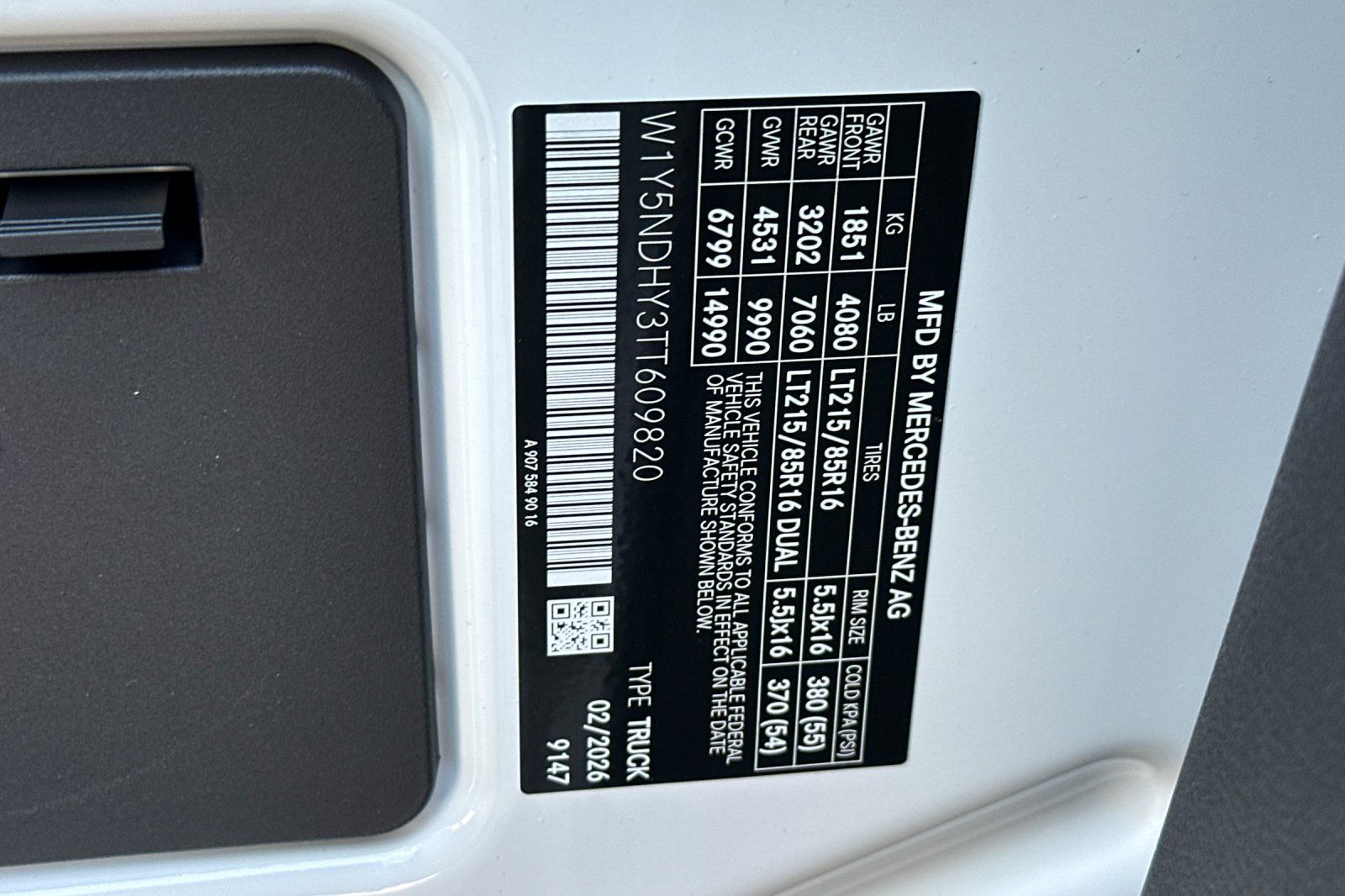 - VIN : W1Y5NDHY3TT609820