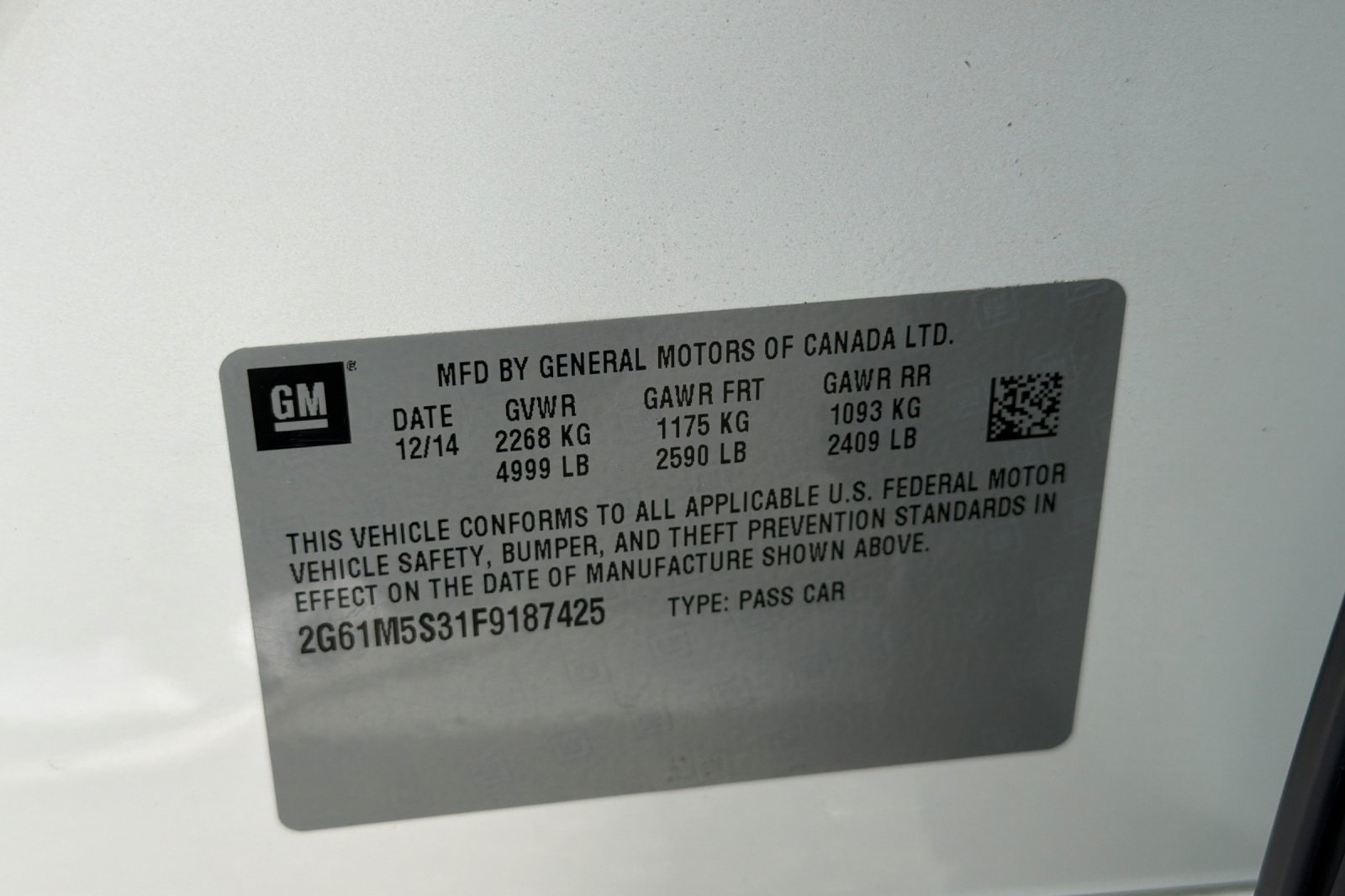 - VIN : 2G61M5S31F9187425
