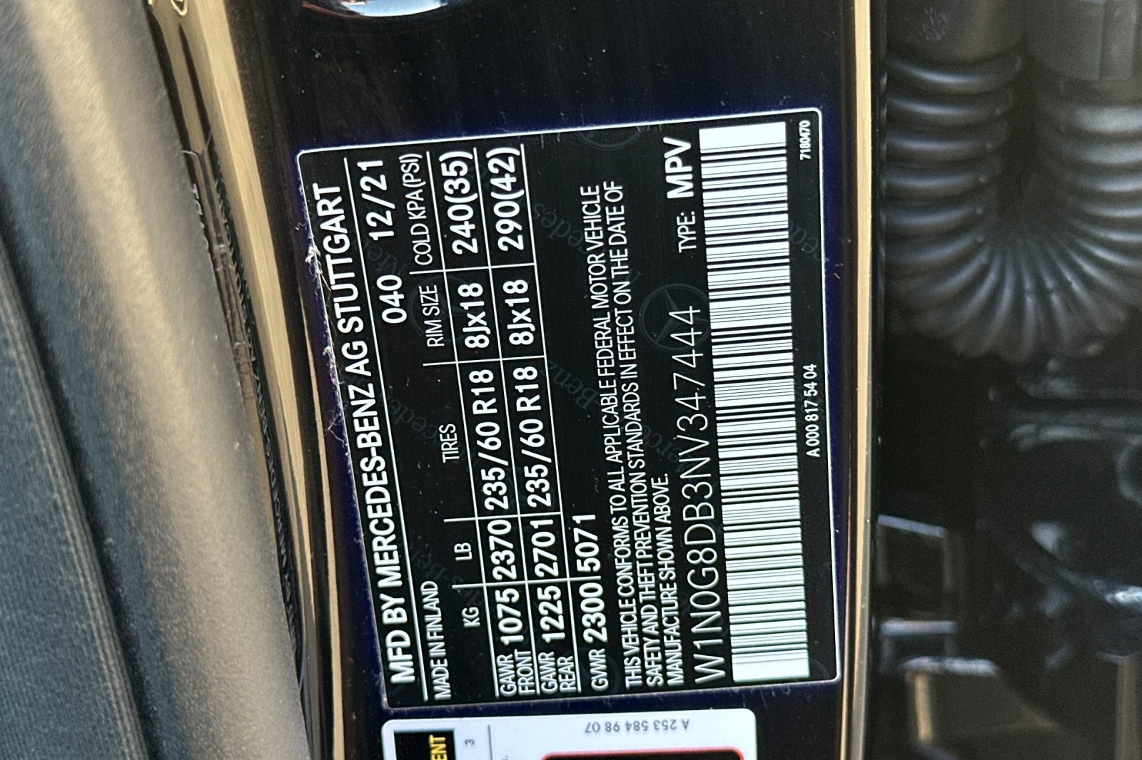 - VIN : W1N0G8DB3NV347444