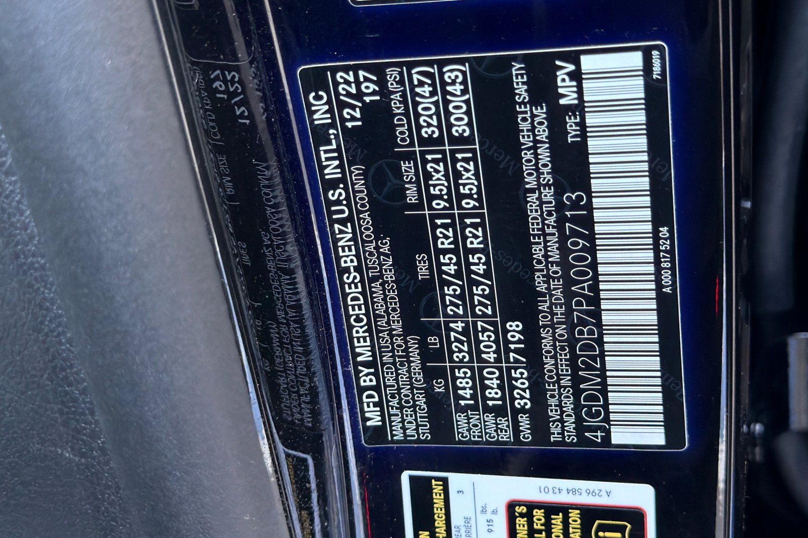 - VIN : 4JGDM2DB7PA009713