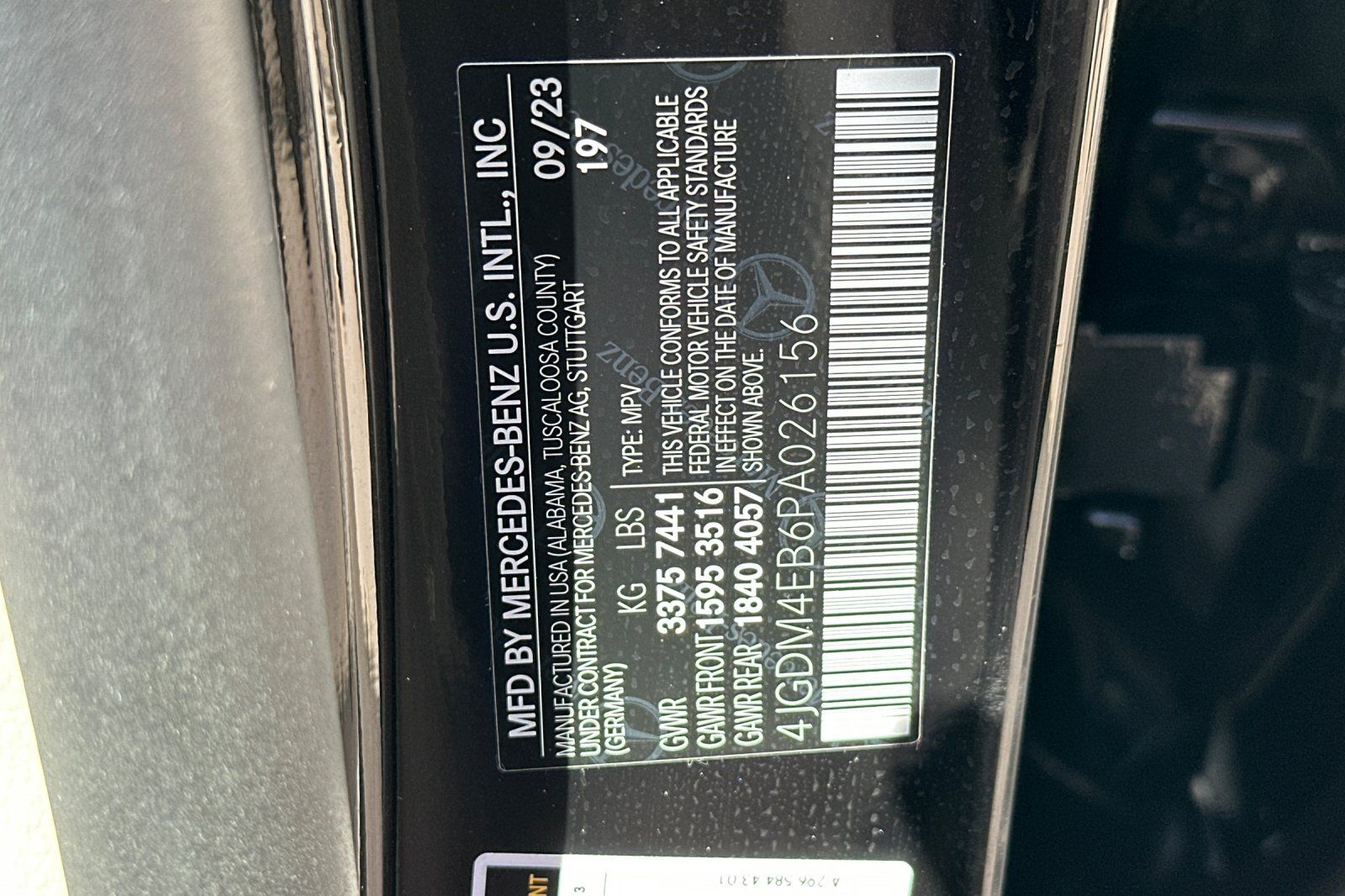 - VIN : 4JGDM4EB6PA026156