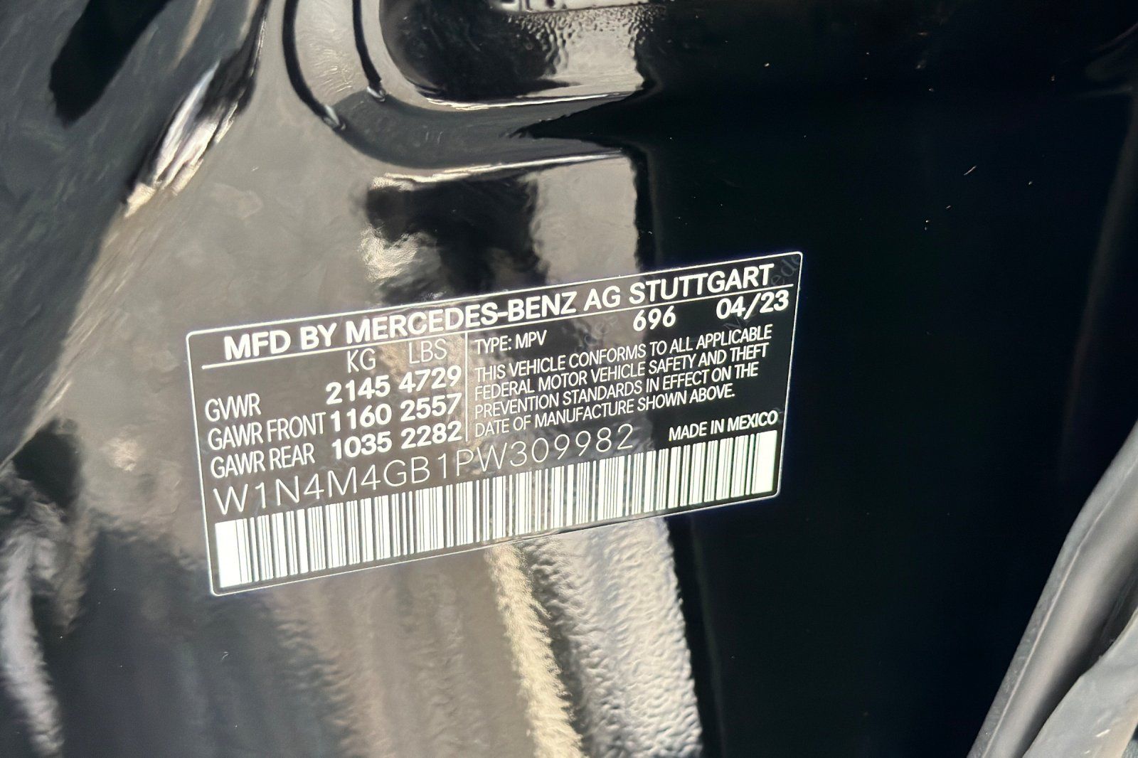 - VIN : W1N4M4GB1PW309982