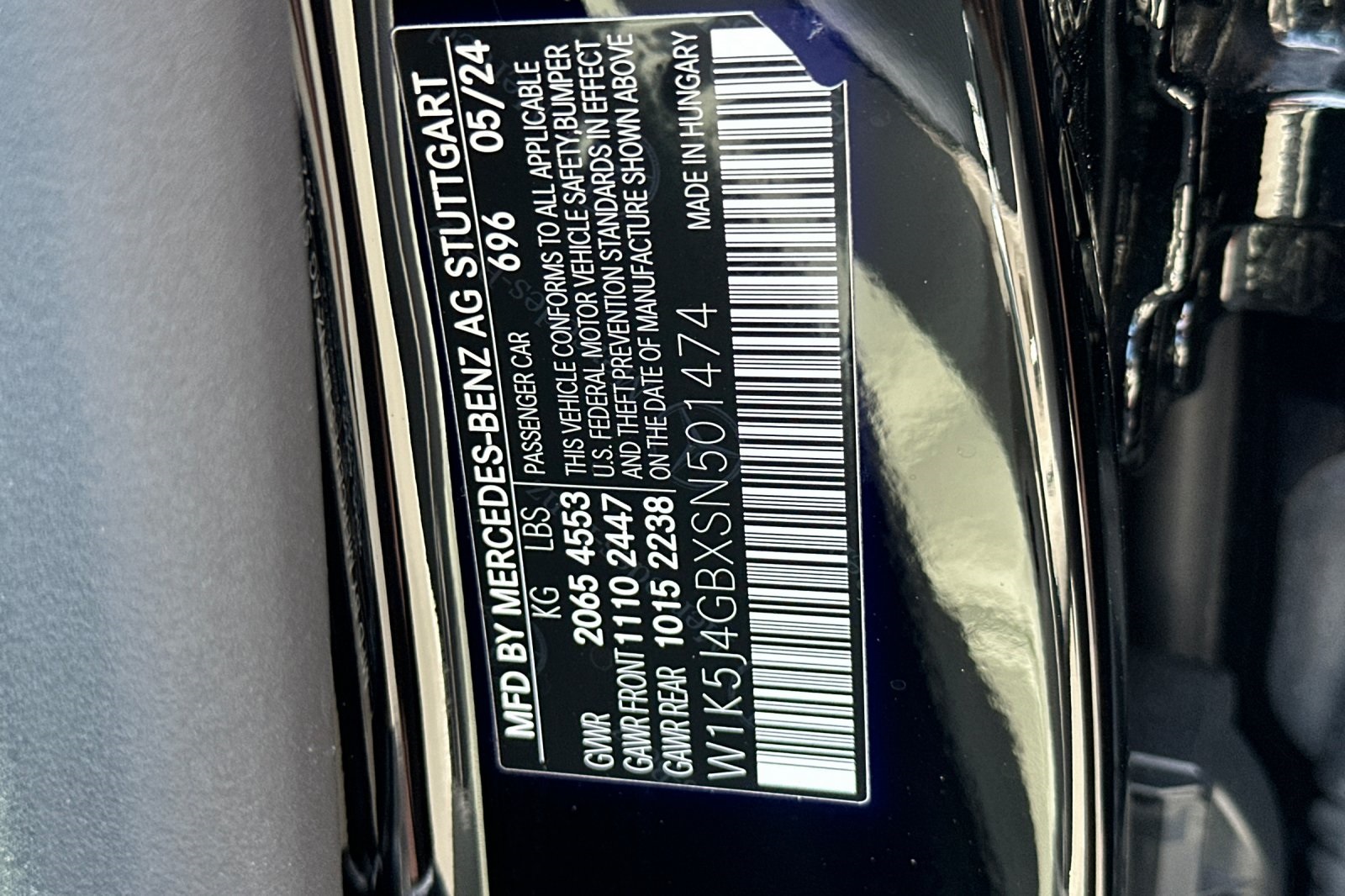 - VIN : W1K5J4GBXSN501474