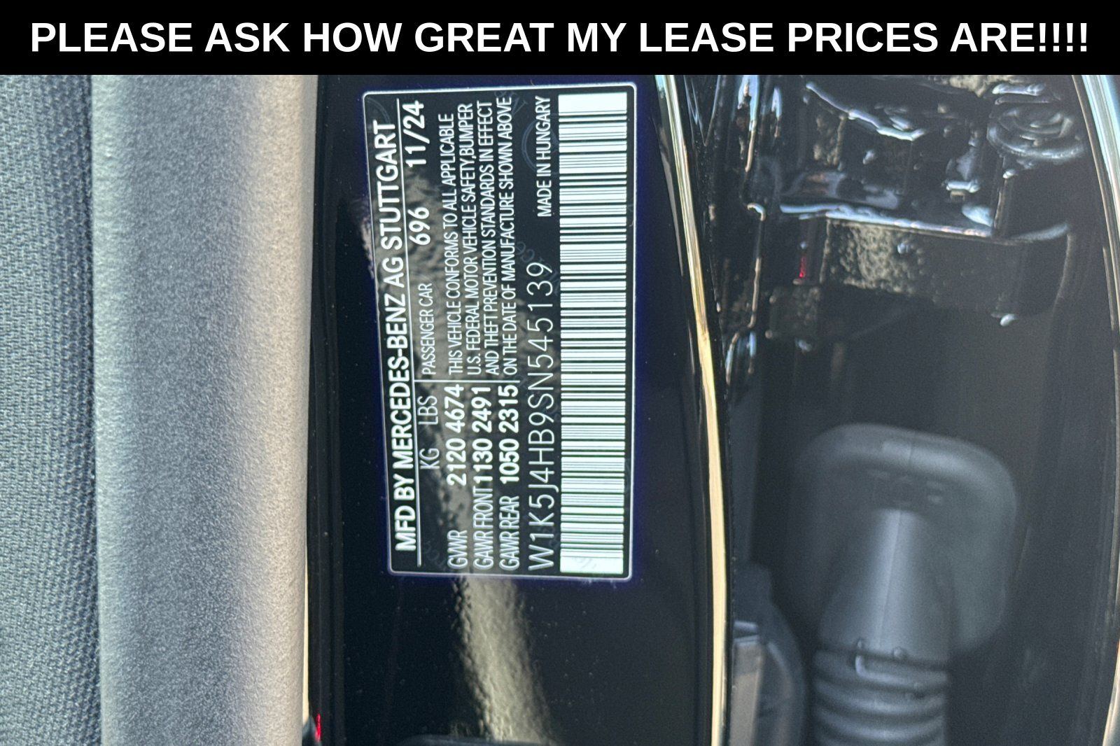 - VIN : W1K5J4HB9SN545139
