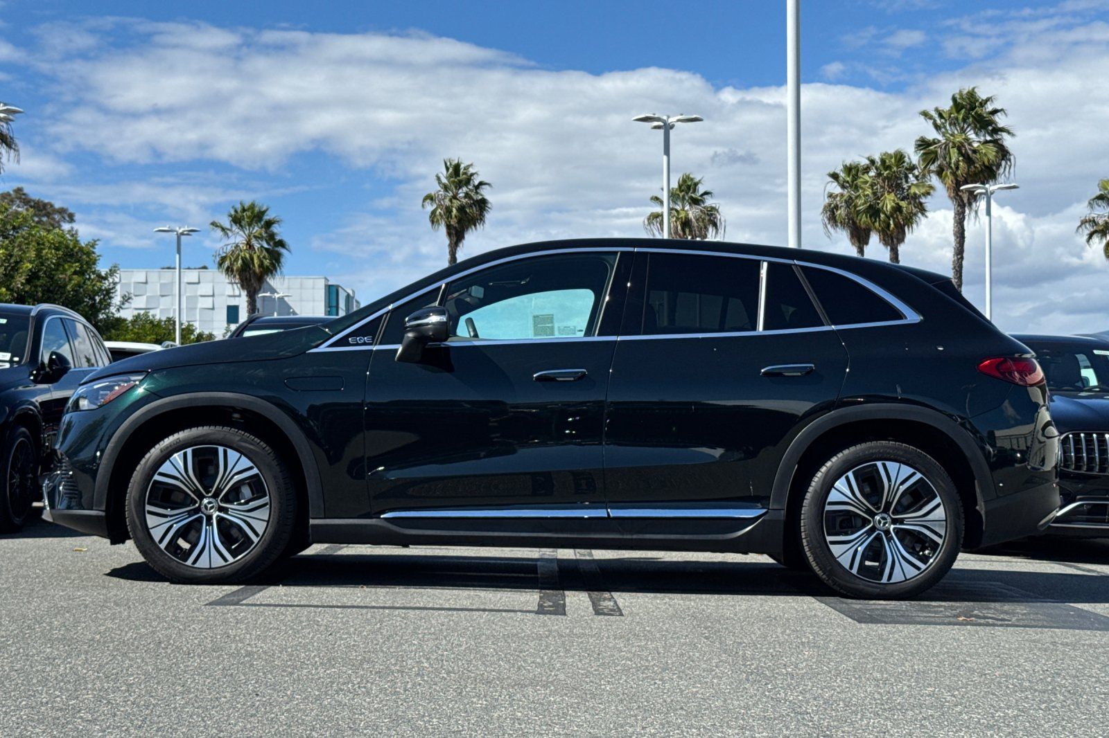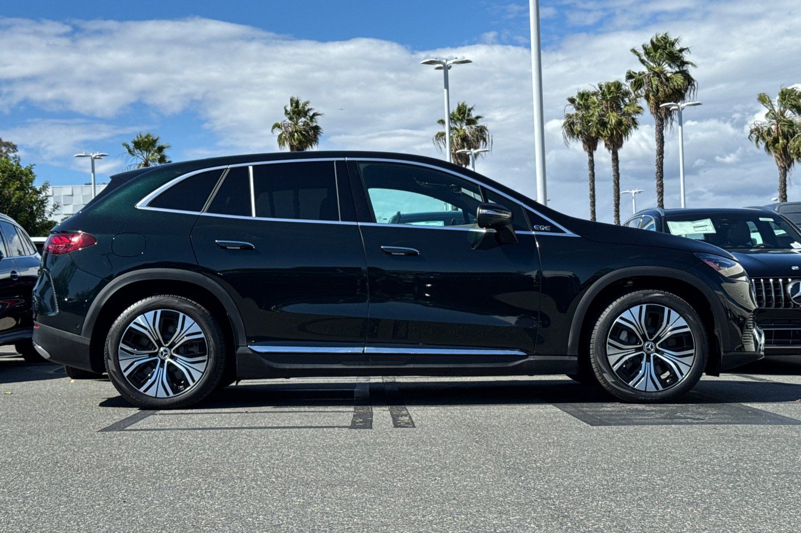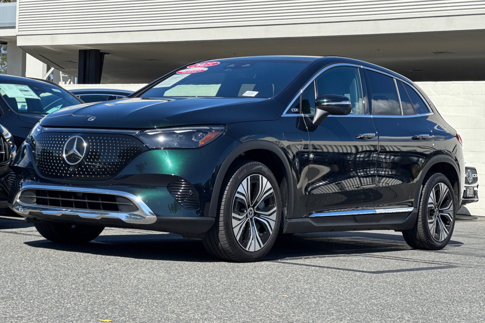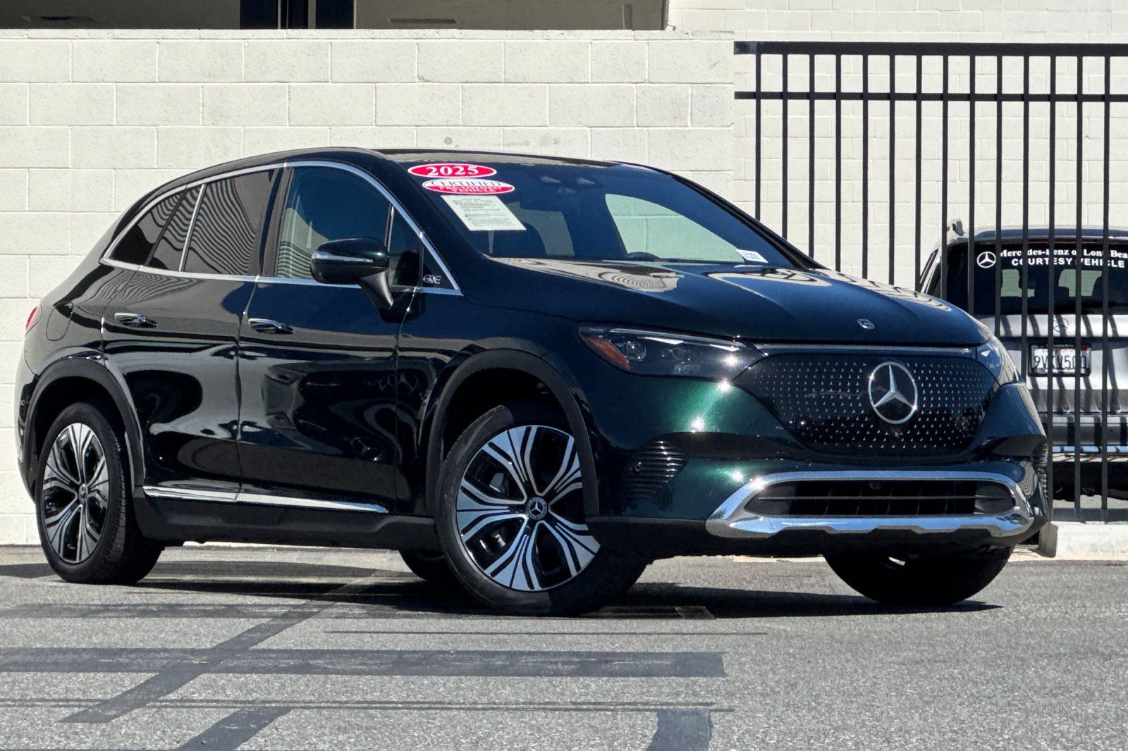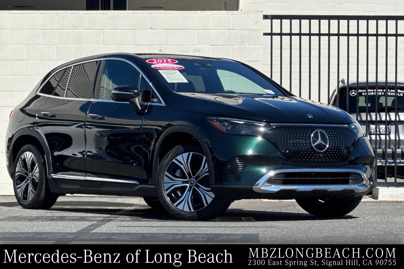 CARFAX One-Owner. Clean CARFAX. Certified. This 2025 Emerald Green Metallic Mercedes-Benz EQE 350 SUV AWD is well equipped and includes these features and benefits: DIGITAL LIGHT Package (Animation Projection Function, DIGITAL LIGHT w/LED Lightband, and Projection Function), Driver Assistance Package (Active Blind Spot Assist, Active Distance Assist DISTRONIC (233), Active Speed Limit Assist, Active Steering Assist, Evasive Steering Assist, Extended Automatic Restart in Traffic, PRE-SAFE Impulse Side, Route-Based Speed Adaptation, and Traffic Sign Assist), Exclusive Trim Package (Active Ambient Lighting and MBUX Augmented Reality for Navigation), Winter Package (Heated Rear Seats, Heated Steering Wheel, Heated Windshield, and Heated Windshield Washer System), EQE 350 SUV 4MATIC, Mercedes-Benz Certified, 4D Sport Utility, Electric Motor, 1-Speed Automatic, 4MATIC, Emerald Green Metallic, Black/Sable Brown w/MB-Tex Upholstery, 15 Speakers, Apple CarPlay/Android Auto, Burmester Sound System, Class II Trailer Hitch, Exterior Parking Camera Rear, Navigation system: Navigation with Electric Intelligence, Power door mirrors, Power Liftgate, Power moonroof: Panorama, Split folding rear seat, Ventilated Front Seats, Wheels: 20" x 8.5J 5-Spoke w/Black Accents, 4-Wheel Disc Brakes, ABS brakes, Air Conditioning, Alloy wheels, Auto High-beam Headlights, Auto tilt-away steering wheel, Auto-dimming door mirrors, Auto-dimming Rear-View mirror, Automatic temperature control, Brake assist, Bumpers: body-color, Compass, Contour Ambient Lighting, Delay-off headlights, Driver door bin, Driver vanity mirror, Dual front impact airbags, Dual front side impact airbags, Electronic Stability Control, Emergency communication system: eCall Emergency System, Four wheel independent suspension, Front anti-roll bar, Front Bucket Seats, Front Center Armrest, Front dual zone A/C, Front reading lights, Front Seat Memory, Garage door transmitter: HomeLink, Head restraints memory, Heated door mirrors, Heated Front Seats, Heated front seats, HVAC memory, Illuminated entry, Knee airbag, Leather steering wheel, Low tire pressure warning, MB-Tex Upholstery, MBUX EQ Navigation Services, MBUX Navigation, Memory seat, Occupant sensing airbag, Outside temperature display, Overhead airbag, Overhead console, Panic alarm, Passenger door bin, Passenger vanity mirror, Power adjustable front head restraints, Power driver seat, Power Front Seats, Power passenger seat, Power steering, Power windows, Premium audio system: MBUX, Radio data system, Radio: MBUX Multimedia System, Rain sensing wipers, Rear anti-roll bar, Rear reading lights, Rear seat center armrest, Rear window defroster, Rear window wiper, Remote keyless entry, Security system, SiriusXM Satellite Radio w/Trial Period, Speed control, Speed-sensing steering, Speed-Sensitive Wipers, Spoiler, Steering wheel memory, Steering wheel mounted audio controls, Telescoping steering wheel, Tilt steering wheel, Traction control, Trim Backlighting, Trip computer, Turn signal indicator mirrors, Variably intermittent wipers, Wheels: 20" x 8.5J 5-Spoke, and Wireless Smartphone Integration. EQE 350 SUV 4MATIC, 4D Sport Utility, Electric Motor, 1-Speed Automatic, 4MATIC, Emerald Green Metallic, Black/Sable Brown w/MB-Tex Upholstery, 15 Speakers, Active Ambient Lighting, Active Blind Spot Assist, Active Distance Assist DISTRONIC (233), Active Speed Limit Assist, Active Steering Assist, Animation Projection Function, Apple CarPlay/Android Auto, Burmester Sound System, Class II Trailer Hitch, DIGITAL LIGHT Package, DIGITAL LIGHT w/LED Lightband, Driver Assistance Package, Evasive Steering Assist, Exclusive Trim Package, Extended Automatic Restart in Traffic, Exterior Parking Camera Rear, Heated Rear Seats, Heated Steering Wheel, Heated Windshield, Heated Windshield Washer System, MBUX Augmented Reality for Navigation, Navigation system: Navigation with Electric Intelligence, Power door mirrors, Power Liftgate, Po