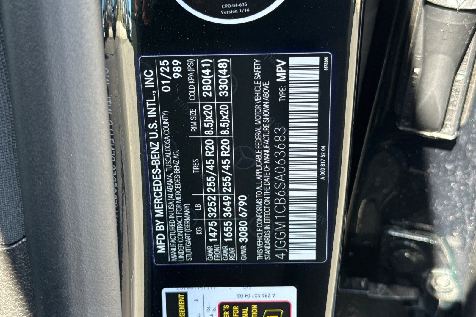 - VIN : 4JGGM1CB6SA063683