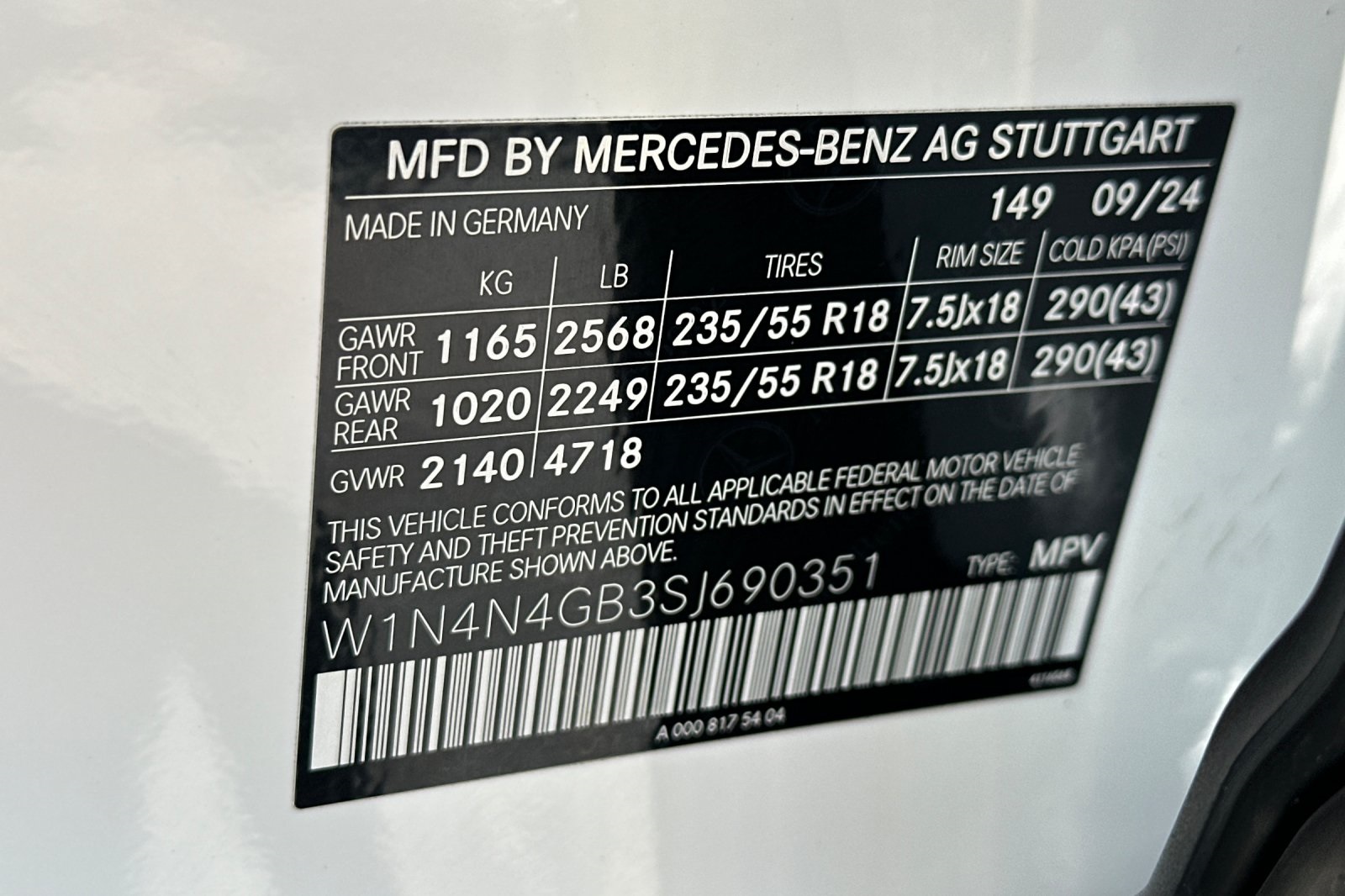 - VIN : W1N4N4GB3SJ690351