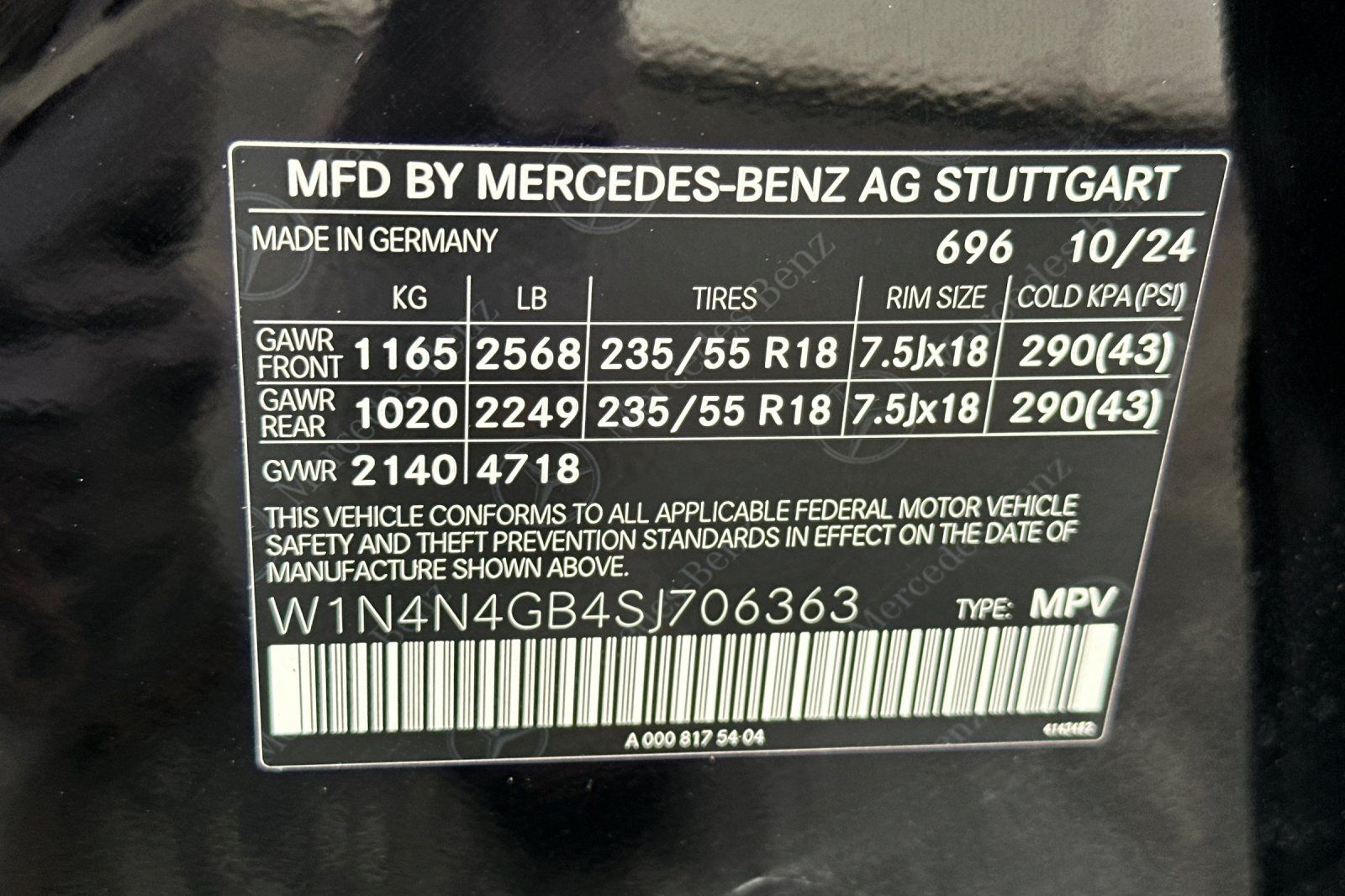 - VIN : W1N4N4GB4SJ706363