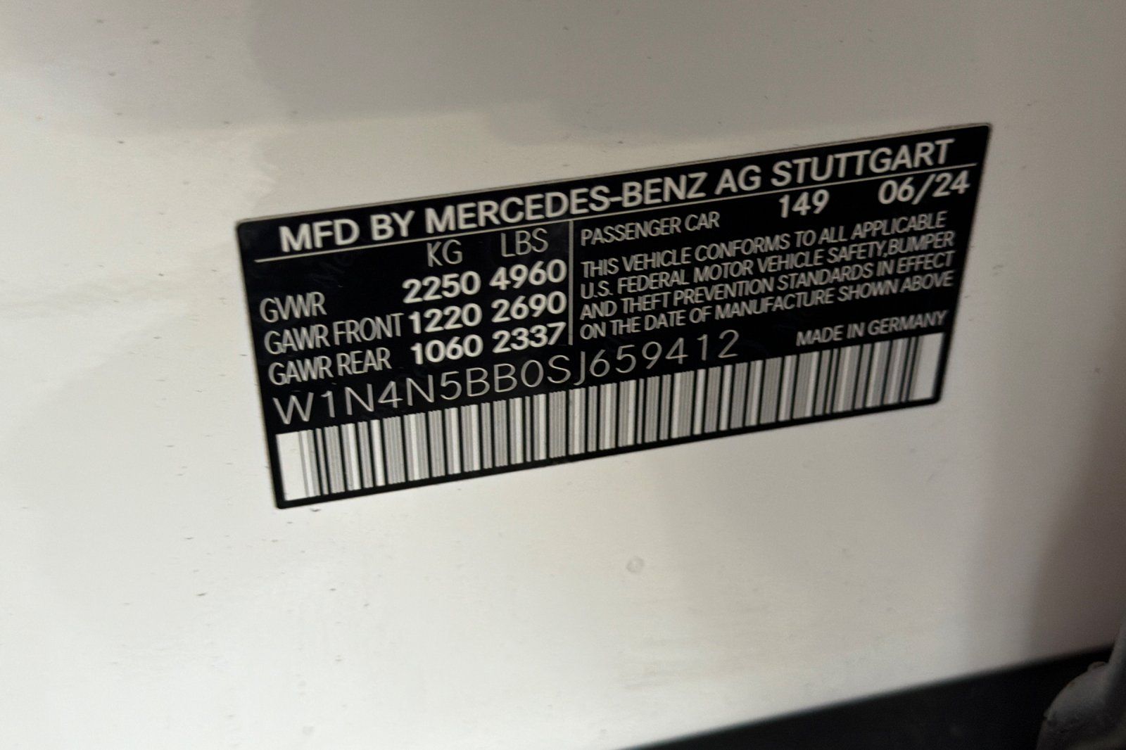 - VIN : W1N4N5BB0SJ659412